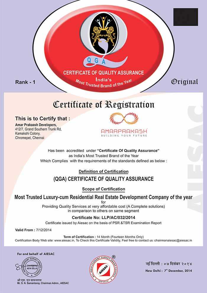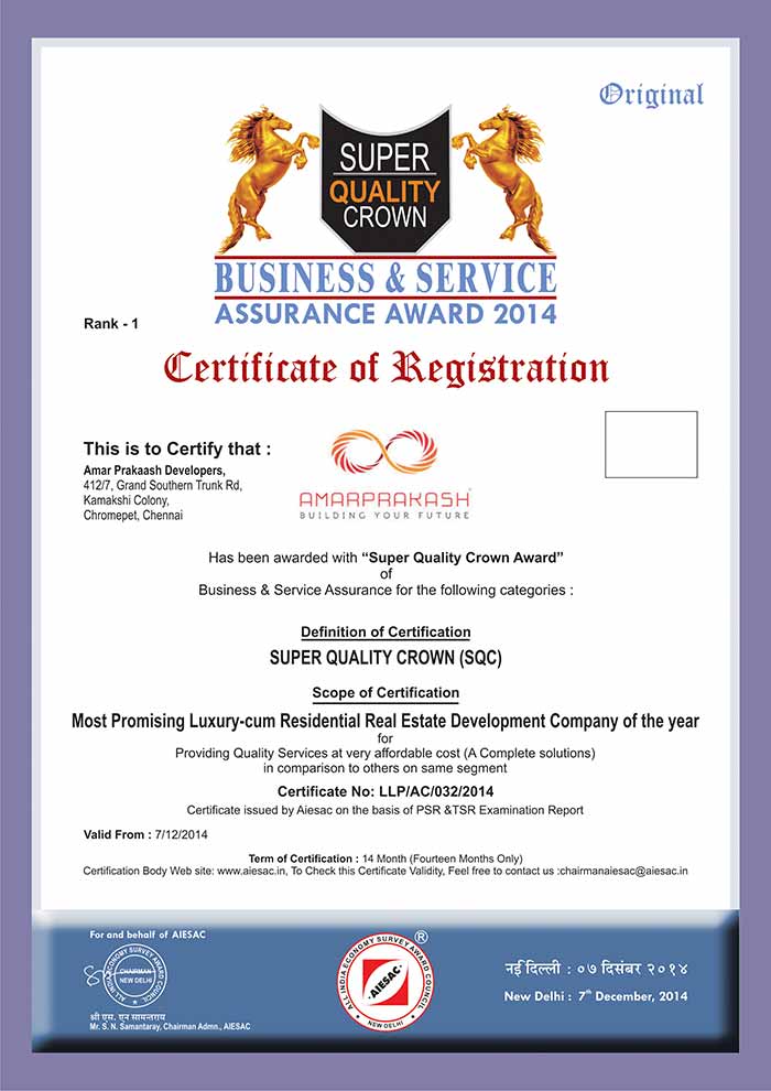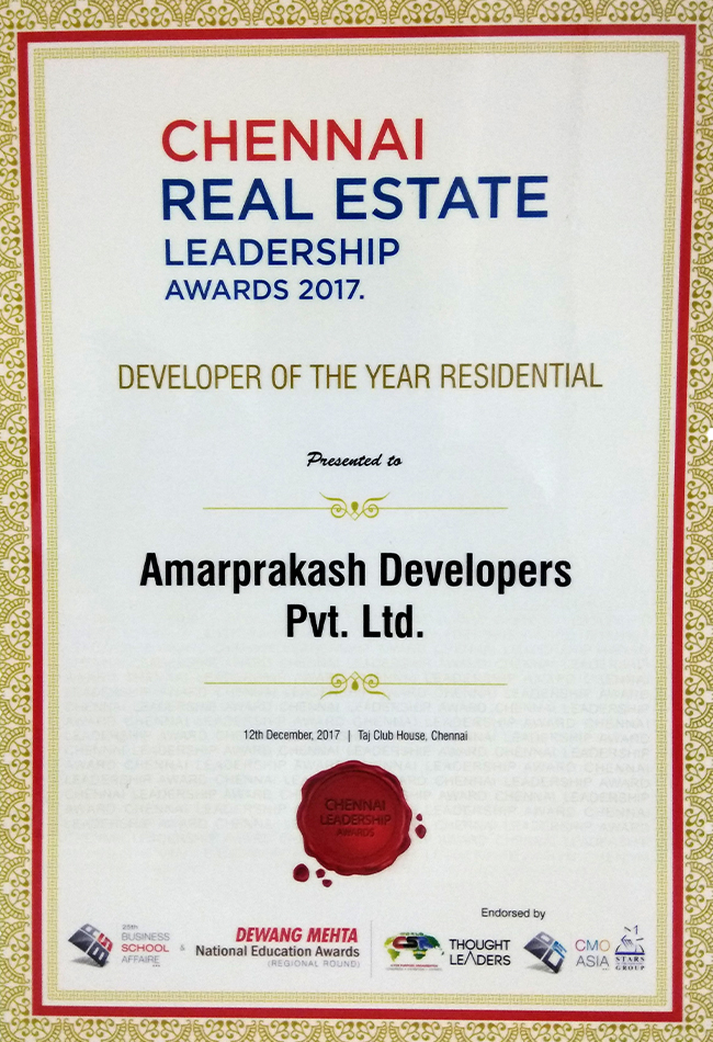 MOST TRUSTED RESIDENTIAL DEVELOPER (TAMIL NADU) - AMARPRAKASH DEVELOPERS