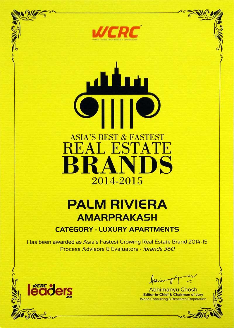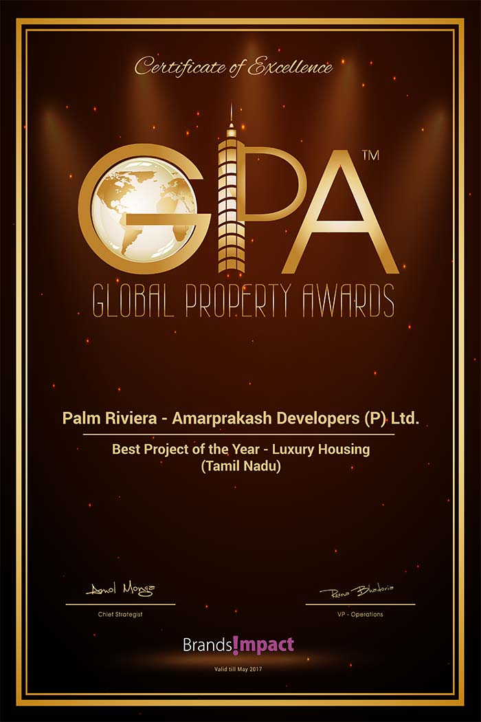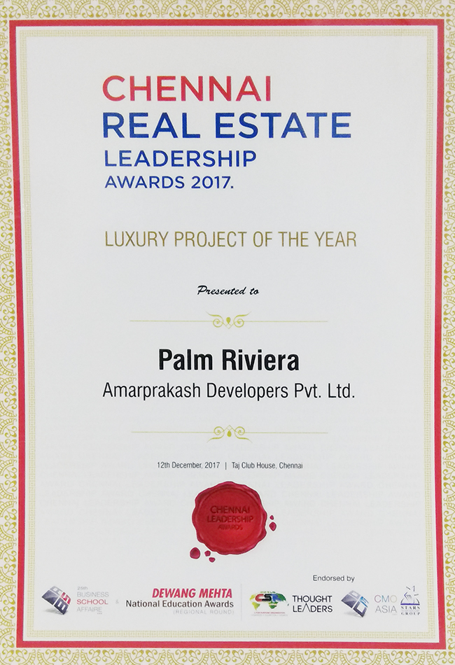 Best Luxury Condominium Project of the Year 2015 South Chennai - Palm Riviera