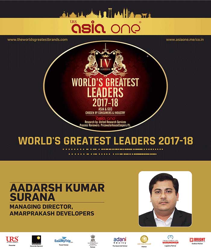 WORLD'S GREATEST LEADERS 2017-18 - MR. AADARSH KUMAR SURANA - MD, AMARPRAKASH DEVELOPERS